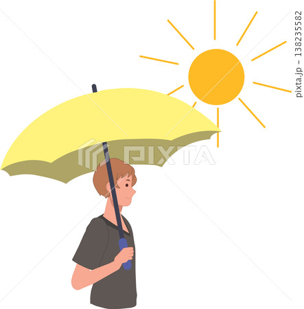 umbrella sun protection illustration woman standing under shade in hot summer weather