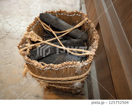 岩手県久慈市の炭焼きの炭を入れる炭かご