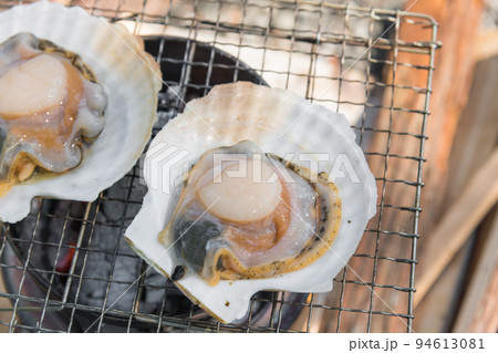 【オートキャンプ場で熾火を使って帆立の網焼き】