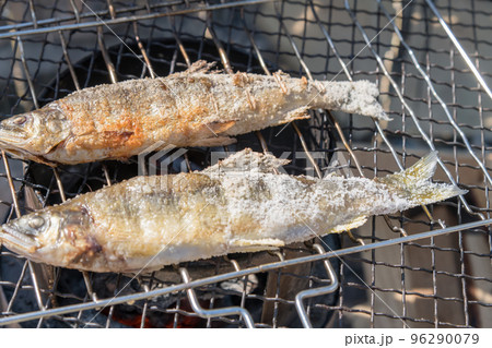 【オートキャンプ場で熾火を使って養殖鮎の塩焼き】