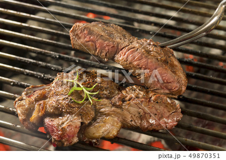 Juicy beef steak grilled with salt, spices and herbs