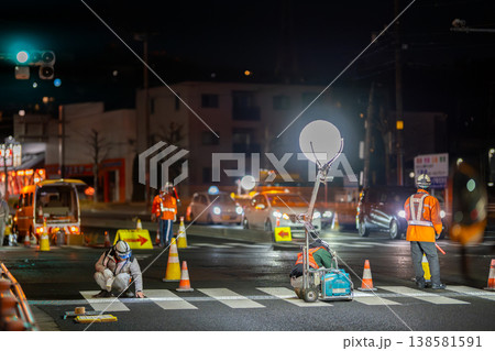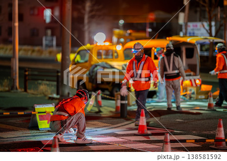 夜間工事 深夜作業 道路工事 視覚障害者誘導用ブロック