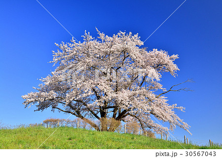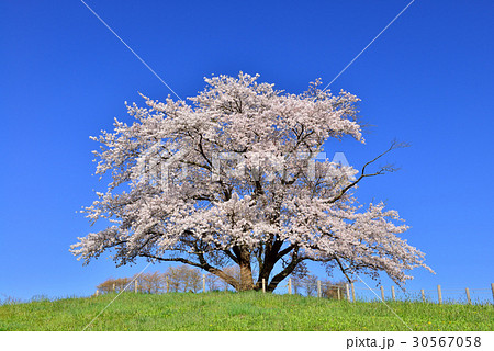 「岩手県」青空に映える満開の為内の一本桜 八幡平市