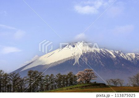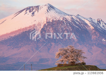 [岩手県]岩手山と為内の一本桜の風景 八幡平市