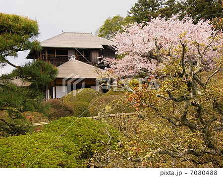 偕楽園 観梅シーズン 好文亭と梅林 人物なし