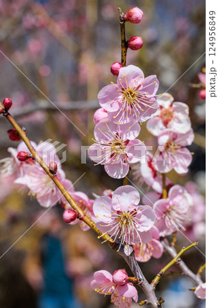 百品種の香り 水戸偕楽園に咲く薄紅色の梅の花 名木「烈公梅」のアップ