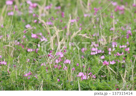 田んぼに生えているレンゲの花
