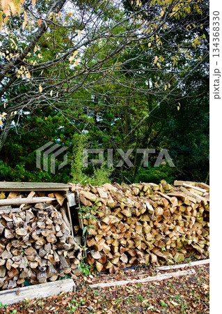 【イメージ素材】積み上げられた薪