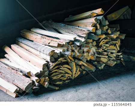 積まれ沢山の薪