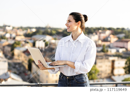 Confident Young Businessman Posing Against Urban Sunset Skyline
