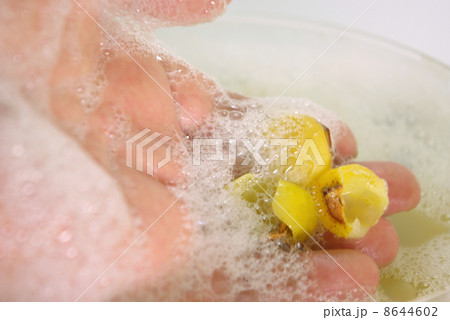ムクロジの実をビニール袋に入れて揉んで作った滑らかな泡