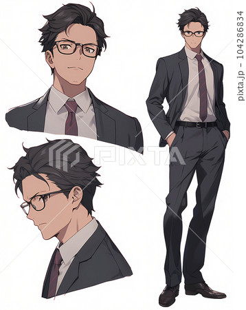 スーツ姿の男性の色々なバリエーションのイラスト(Generative AI)