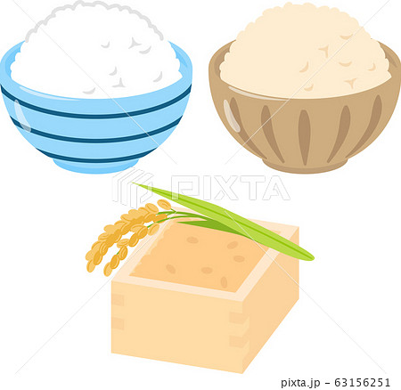 白米、食パン、玄米、ライ麦パンのイラストセット