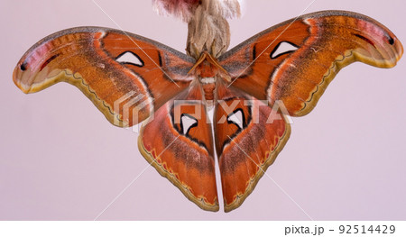 Luxurious large butterfly got out of the cocoon and dries its wings. Attacus atlas