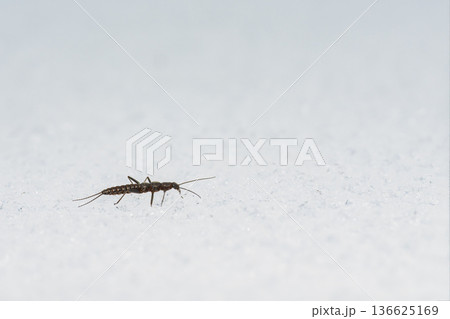 雪の上を歩くセッケイカワゲラ
