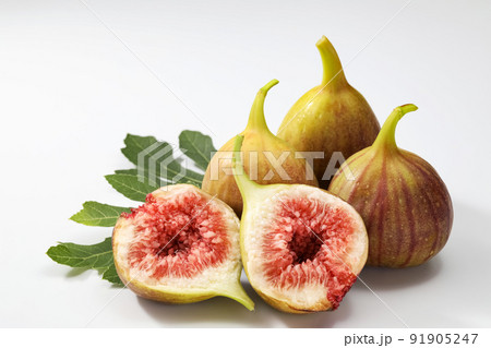 whole fruit and fig slices on white background