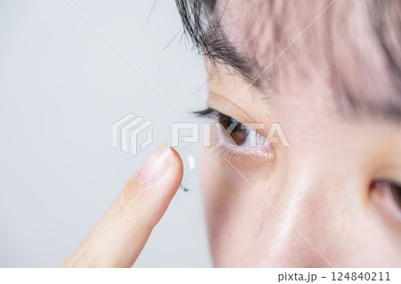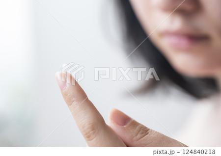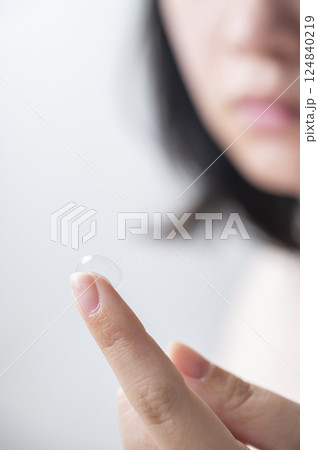 コンタクトレンズを装着する女性の指