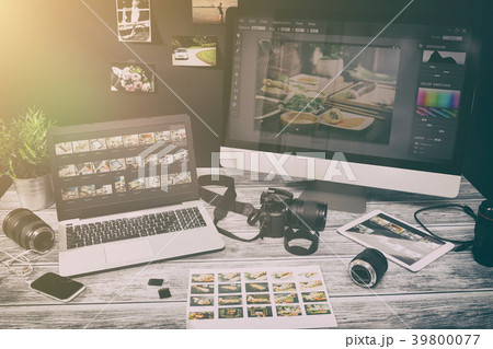 Photographers computer with photo edit programs.