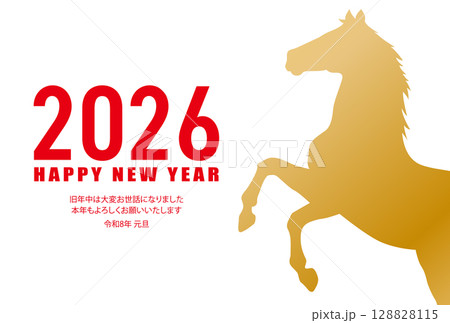 2026年 午年 そのまま使える年賀状素材 午 シンプルな馬のシルエット