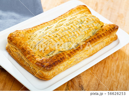 Puff pastry pie with salmon