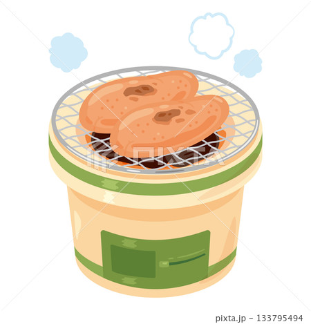 七輪と焼きタラコのイラスト