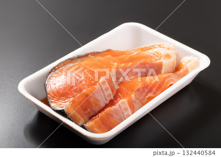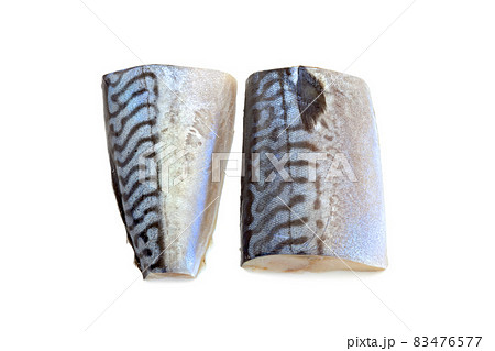 塩サバの切り身、食品トレー入り【白背景・切り抜き】