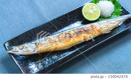 さんまの塩焼きと大根おろし、すだちを添えた和食料理