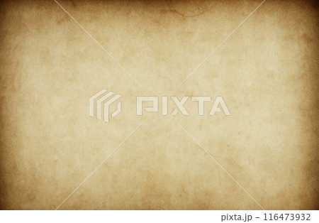 古く黄ばんだ紙。日焼け、しみ、汚れのある紙の背景素材。