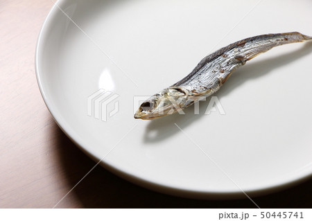 白背景にお皿に載せた焼きうるめ(丸干し)