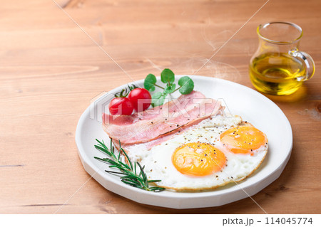 目玉焼きとサラダとコーヒーの朝食 朝ご食のイメージ