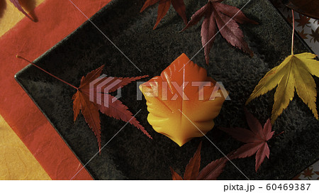 日本の伝統のお菓子:モミジの練り切り(ペースト状にした豆で作られた甘いお菓子。秋なので紅葉
