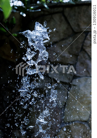 水しぶきが空中浮遊する瞬間のスローモーション画像