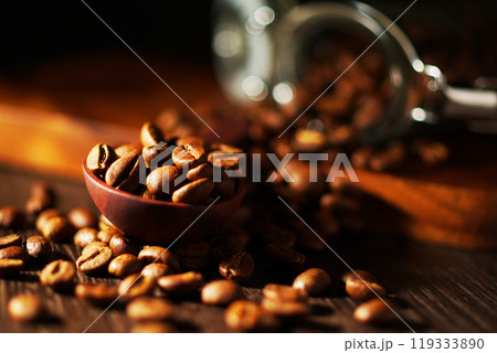 コーヒーキャニスターからこぼれたコーヒー豆