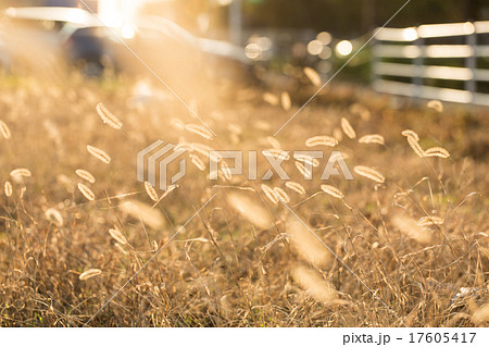 夕日に照らされる猫じゃらし
