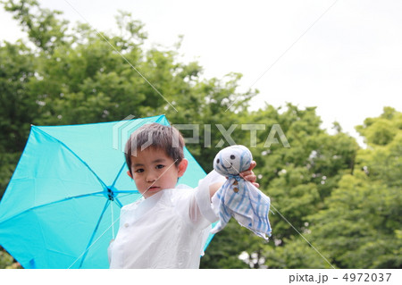 梅雨 雨季 雨 (男の子 子供 小学生 てるてるぼうず)
