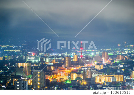 日本の岡山県倉敷市の種松山から見た美しい夜景