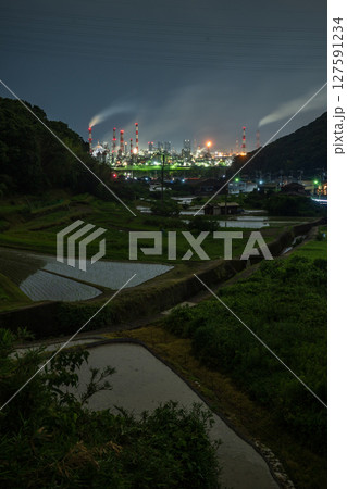 日本の岡山県倉敷市の水島コンビナートの美しい工場夜景