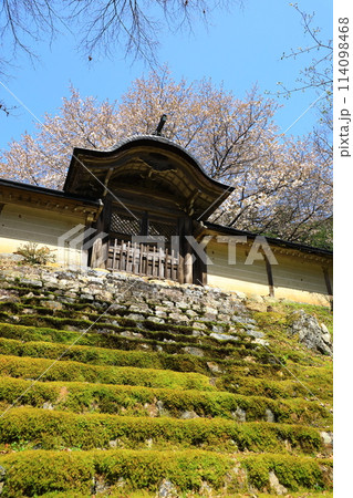 常照皇寺、方丈の軒から眺める九重桜と開山堂