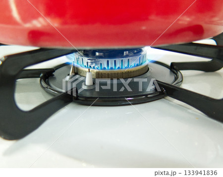 ガスコンロで鍋を温めるイメージ
