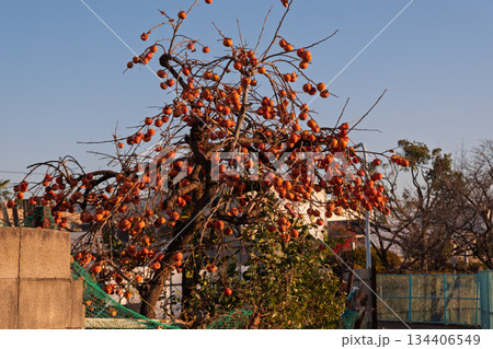 秋の風景 熊の餌 たわわに実が付いた柿の木