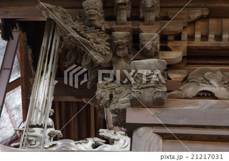 信州 塩尻 北熊井神社 木鼻部彫刻 大隅流の名工 柴宮矩重の作 多くの彫刻が見事な本殿 長野県宝指定