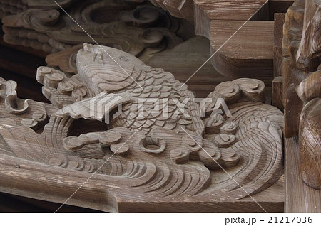 信州 塩尻 北熊井神社 海老虹梁の彫刻 鯉の滝登り 大隅流の名工 柴宮矩重の作 長野県宝指定