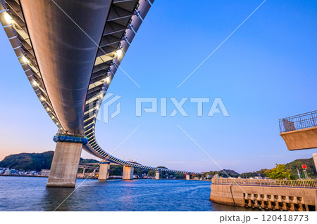 初秋の夜明け前の牛深ハイヤ大橋 熊本県天草市