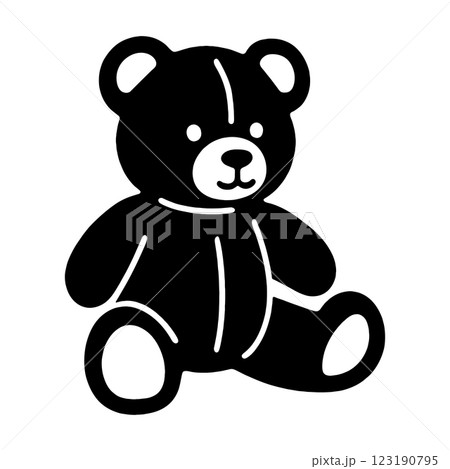 座っているポーズのテディベアの黒いシルエットイラスト 透過背景の切り抜き