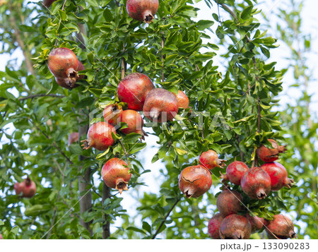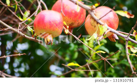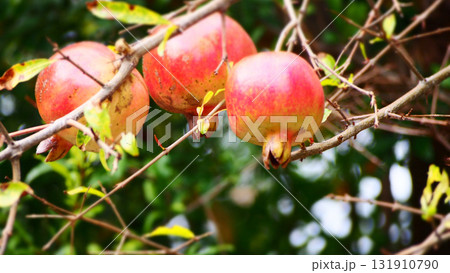 木に実っている熟れたザクロ