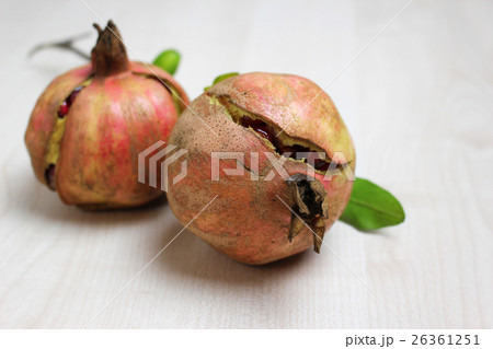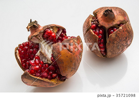 熟して割れたザクロ 果物の写真素材