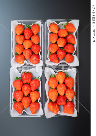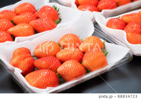 瑞々しく熟した甘くて美味しそうなパック詰めの苺