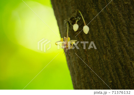 カカオ(チョコレート原料)の小さな実がついたところ(これから大きく成長します)