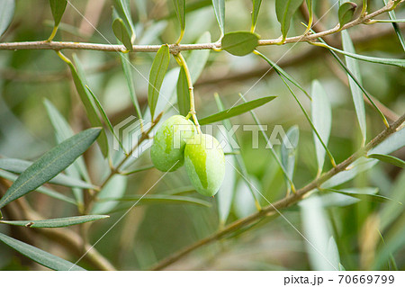 オリーブの実(実は青く、黒くなる前)、日本、秋、東京で撮影