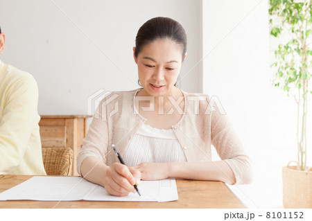 婚姻届を書く熟女